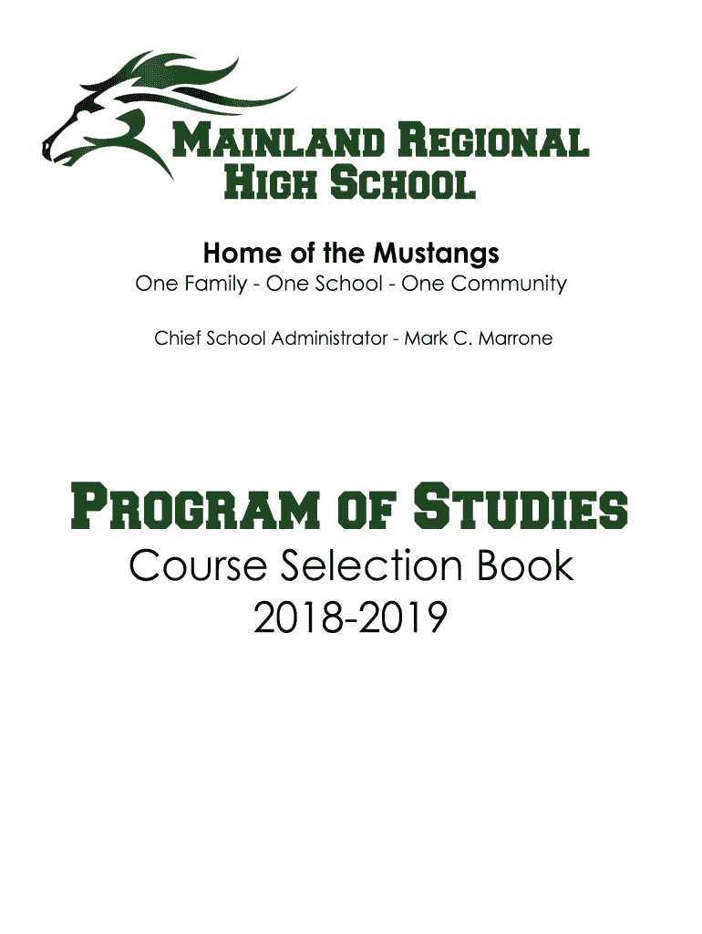 Mainland Regional High School Home of the Mustangs One Family One School One Community Chief School Administrator Mark C. MarroneProgram of Studies Course Selection Book 20182019VISION The Mainland