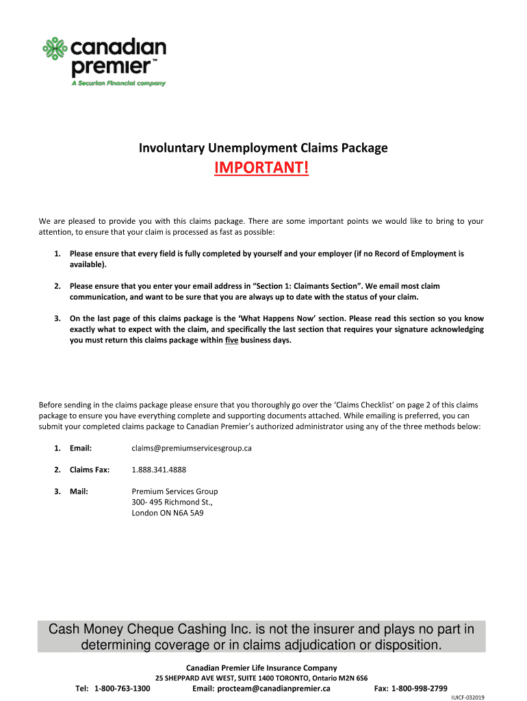 Involuntary Unemployment Claims PackageIMPORTANT!