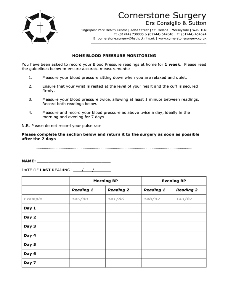 Get the free home bp monitoring sheet - HomeCornerstone Surgery