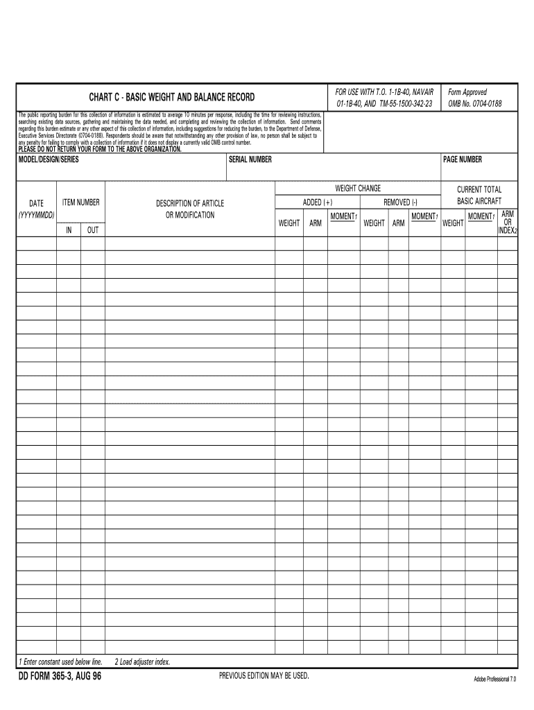 FOR USE WITH T.O. 11B40, NAVAL 011B40, AND TM55150034223CHART C BASIC WEIGHT AND BALANCE Recorder Approved OMB No. 07040188The public reporting burden for this collection of information is estimated
