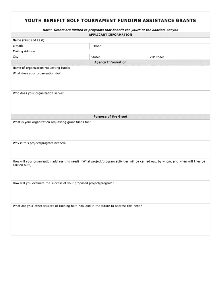 Get the free YOUTH BENEFIT GOLF TOURNAMENT FUNDING ASSISTANCE