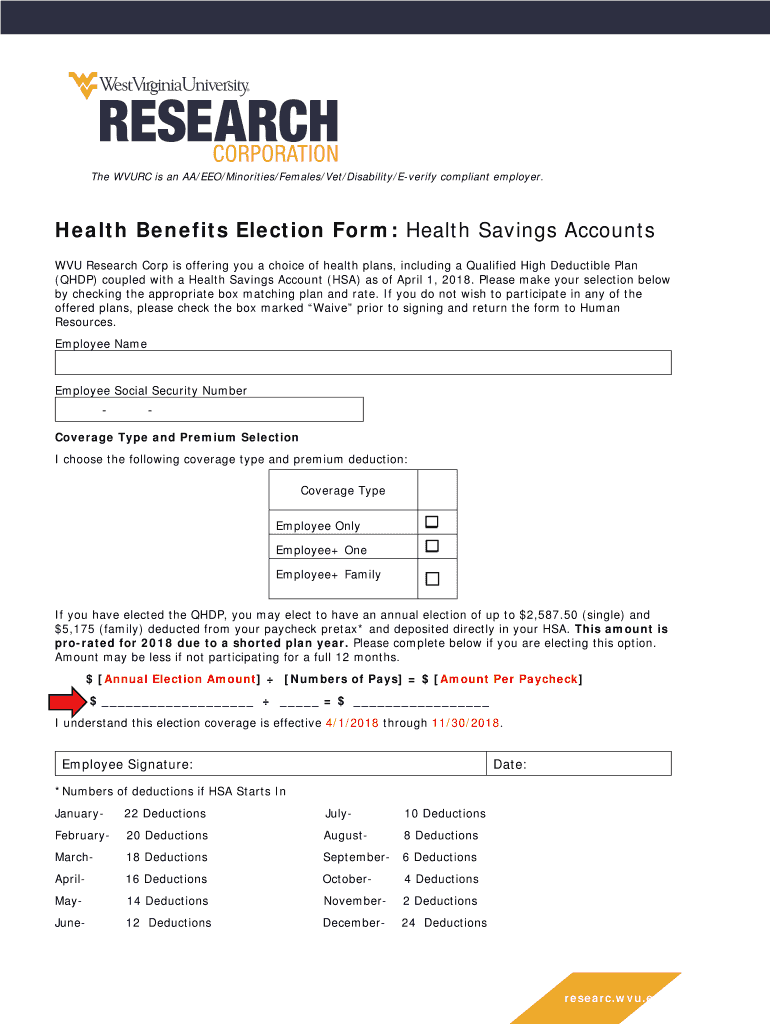 Get the free Health Benefits Election Form: Health Savings Accounts - hr research wvu