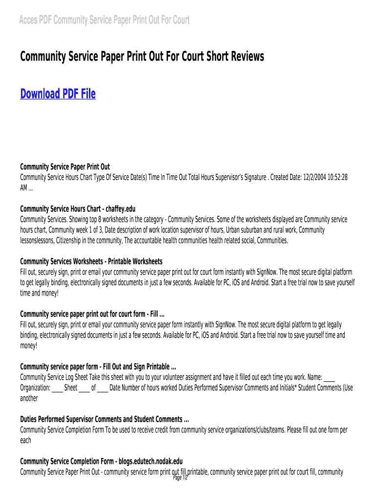 Access PDF Community Service Paper Print Out For CourtCommunity Service Paper Print Out For Court Short Reviews