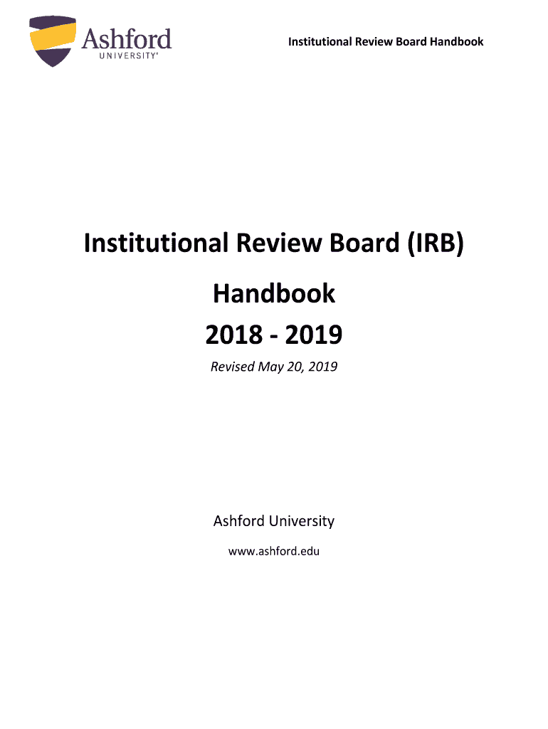 Institutional Review Board HandbookInstitutional Review Board (IRB) Handbook 2018 2019 Revised May 20, 2019Ashford University www.ashford.eduInstitutional Review Board HandbookCONTENTS 1.0 INTRODUCTION