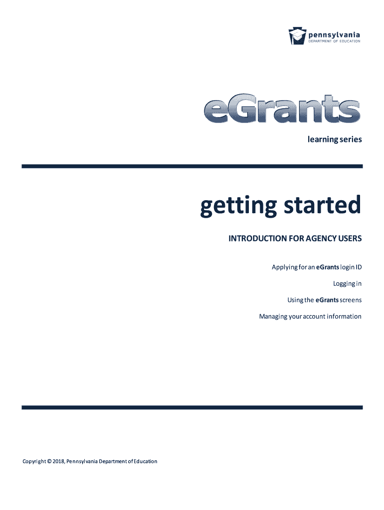 Learning series getting started INTRODUCTION FOR AGENCY USERS Applying for a grants' login ID Logging in Using the grants screens Managing your account informationCopyri ft 2018, Pennsylvania Department