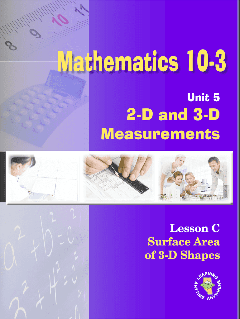 Mathematics 103 Unit 52D and 3D MeasurementsLesson C Surface Area of 3D ShapesCANADIAN Cataloging IN PUBLICATION DATAMAT1793 Math 103 Apprenticeship and Workplace Math Instruction Workbook Package
