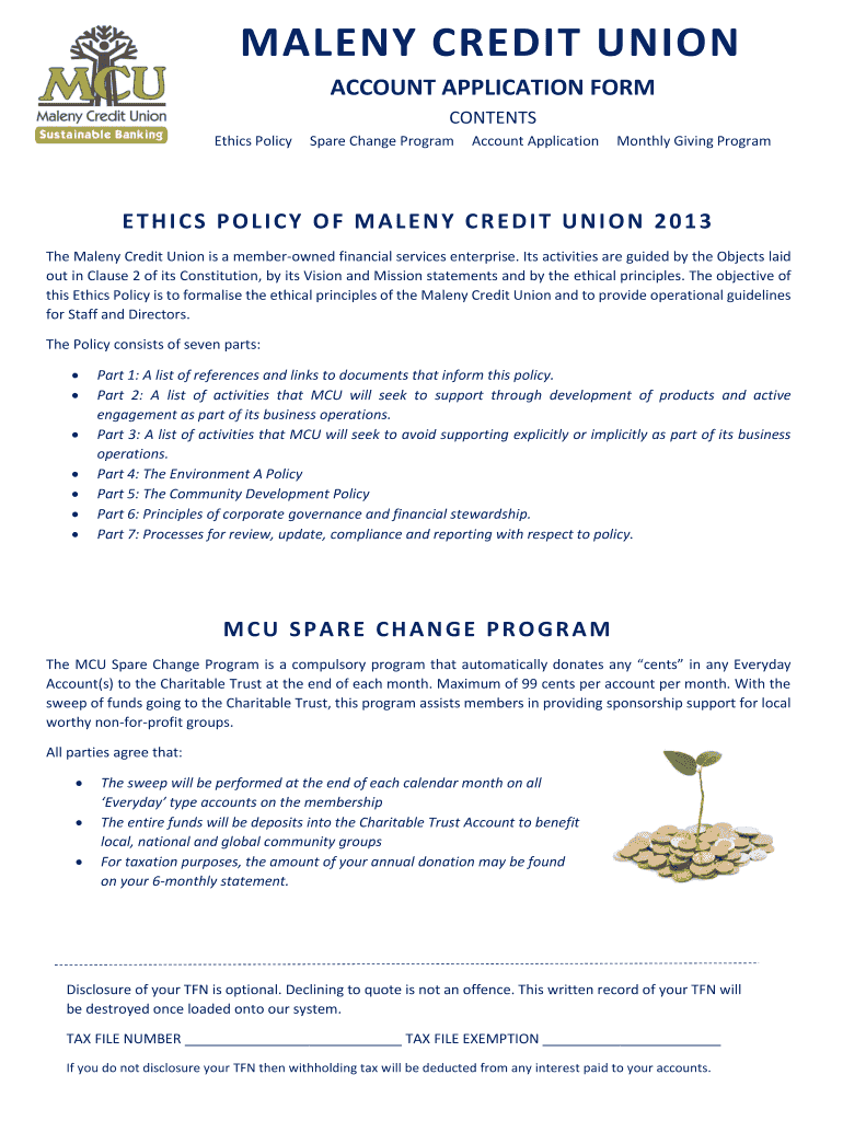 Ethics PolicySpare Change ProgramAccount ApplicationMonthly Giving ProgramETHICS POLICY OF MALE NY CREDIT UNION 2013