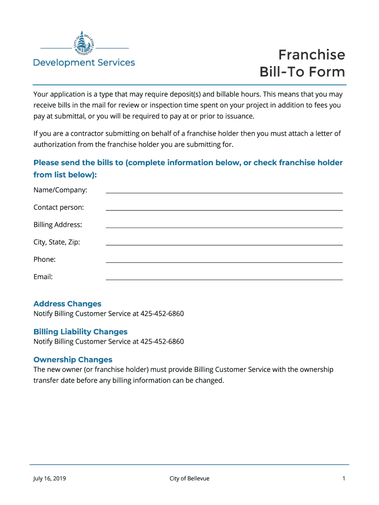 Anyone who wishes to become a franchisee or obtain a franchise license would need to fill out the bill to franchise form.