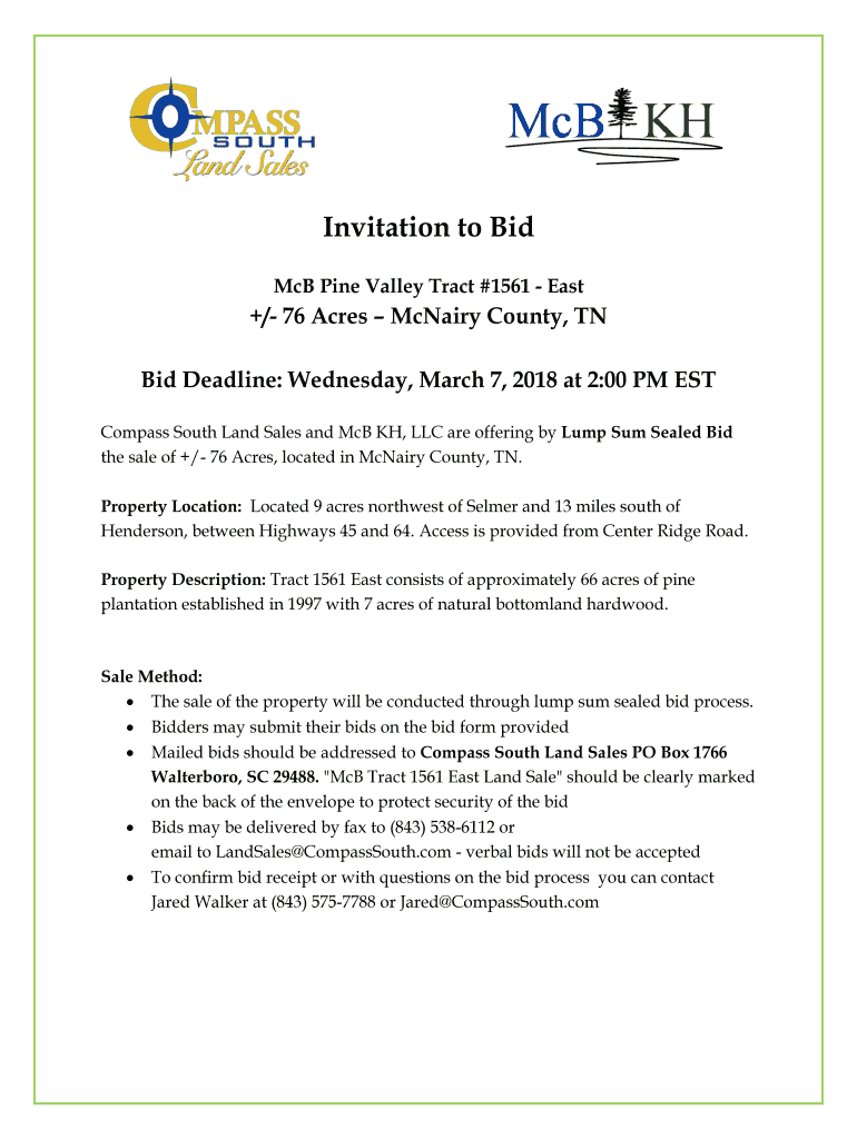 Get the free Invitation to Bid - Compass South Land Sales