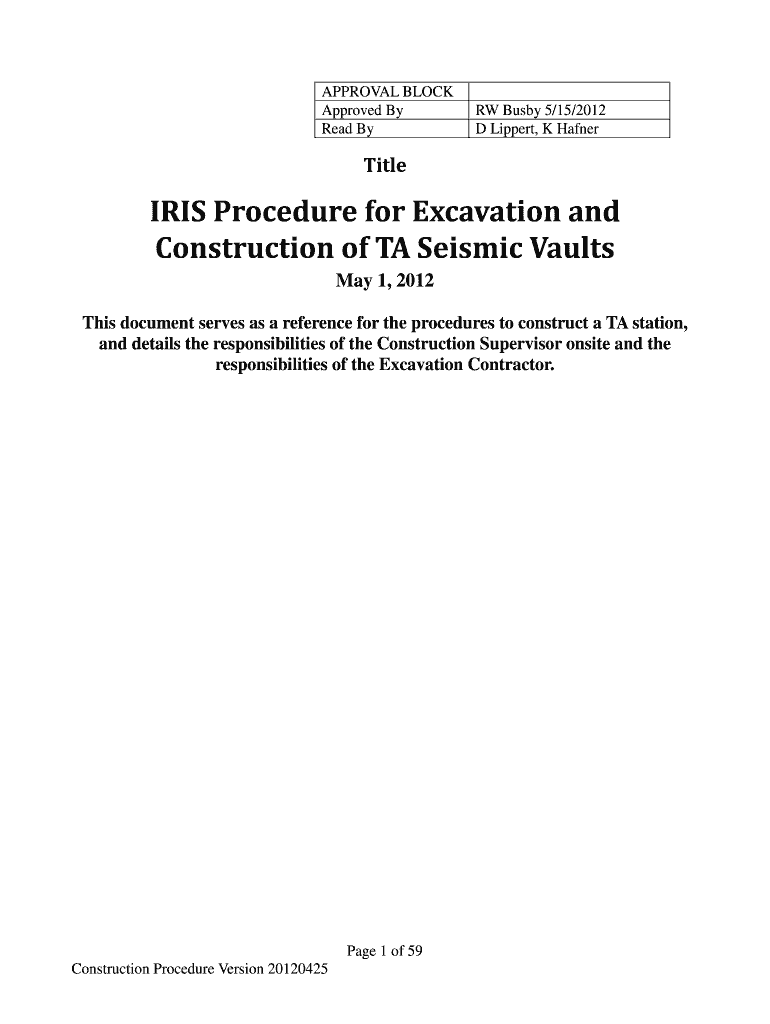 Get the free IRIS Procedure for Excavation and Construction of TA ...