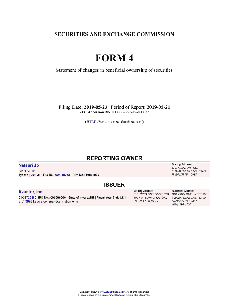 SECURITIES AND EXCHANGE COMMISSIONER 4 Statement of changes in beneficial ownership of securitiesFiling Date: 20190523 Period of Report: 20190521 SEC Accession No. 000076999319000385 (HTML Version