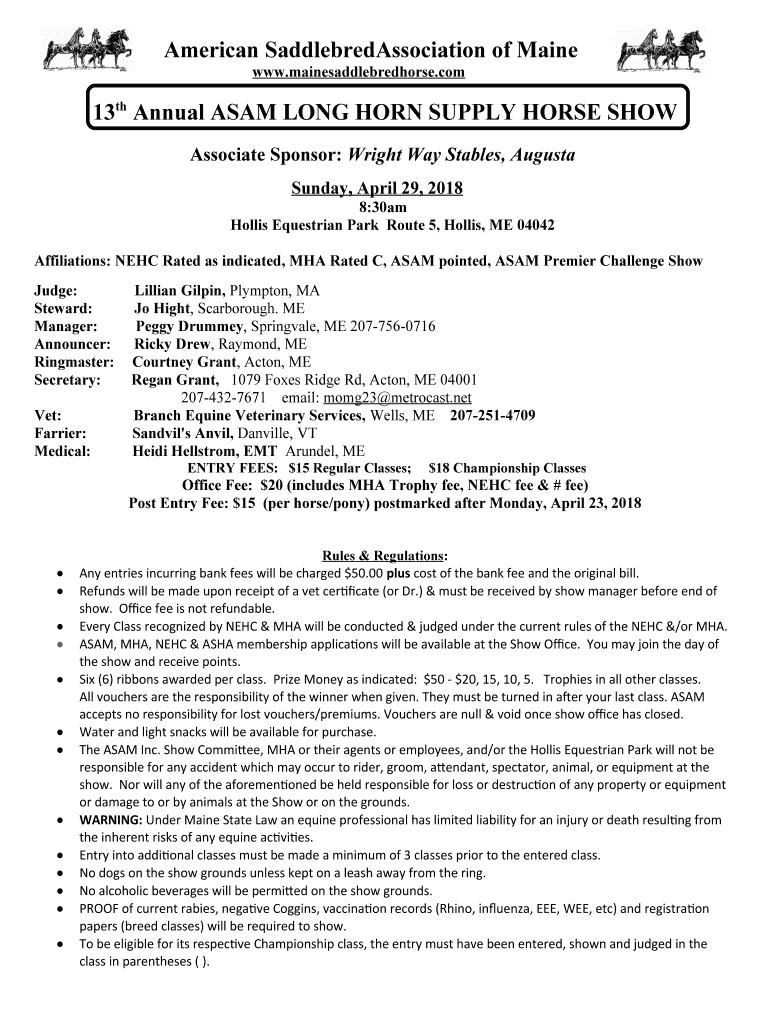 Fill out your american saddlebredassociation of maine online with pdfFiller!