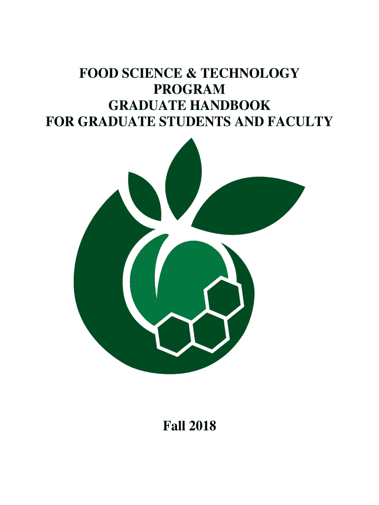 FOOD SCIENCE & TECHNOLOGY PROGRAM GRADUATE HANDBOOK FOR GRADUATE STUDENTS AND FACULTYFall 2018TABLE OF CONTENTS Introduction FSH Department Policies and Procedures Letter of Intent Registration Procedures