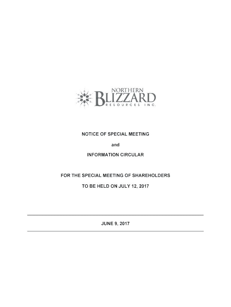 NOTICE OF SPECIAL MEETING and INFORMATION CIRCULAR THE SPECIAL MEETING OF SHAREHOLDERS TO BE HELD ON JULY 12, 2017, JUNE 9, 2017, NOTICE OF SPECIAL MEETING OF SHAREHOLDERS TO BE HELD ON WEDNESDAY,