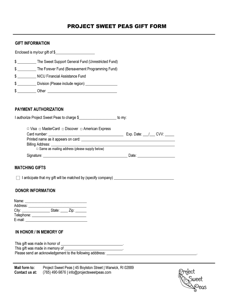 Get the free PROJECT SWEET PEAS GIFT FORM