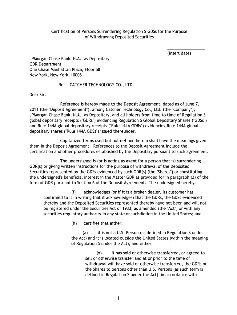 Get the free JPMorgan Chase Bank, N.A., as Depositary GDR Department ...