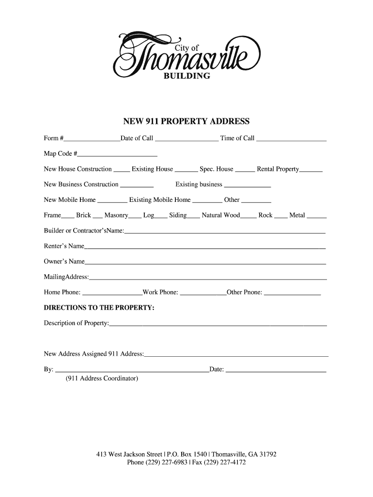 Get the free NEW 911 PROPERTY ADDRESS - City of Thomasville