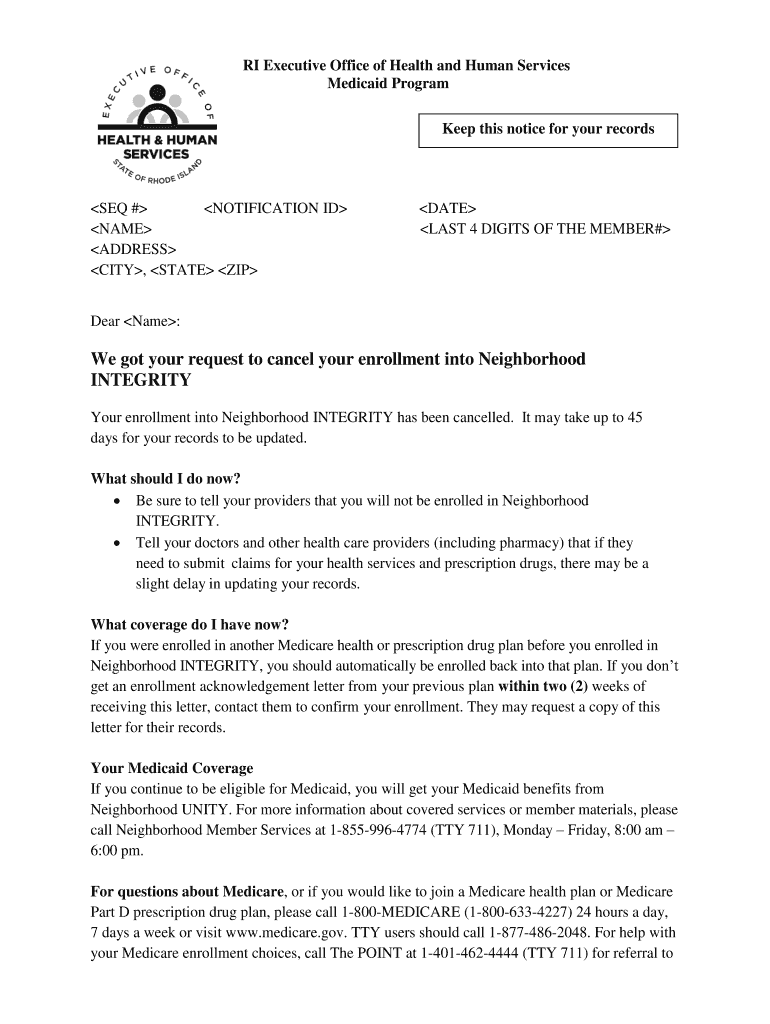 RI Executive Office of Health and Human Services Medicaid Program Keep this notice for your recorded # NOTIFICATION ID NAME ADDRESS CITY, STATE UPDATE LAST 4 DIGITS OF THE MEMBER×Dear Name:We got