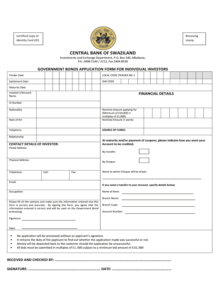 Tel: 24082144 / 2212, Fax 24048530GOVERNMENT BONDS APPLICATION
