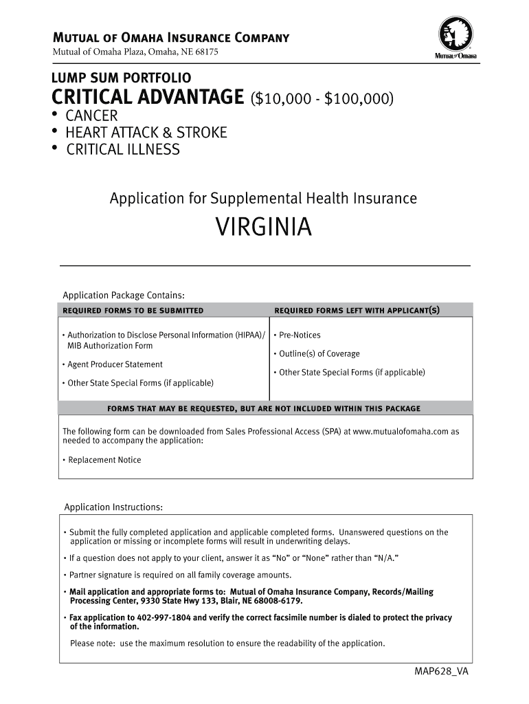 Mutual of Omaha Insurance Company Mutual of Omaha Plaza, Omaha, NE 68175LUMP SUM PORTFOLIOCRITICAL ADVANTAGE ($10,000 ×100,000) CANCER HEART ATTACK & STROKE CRITICAL ILLNESSApplication for Supplemental