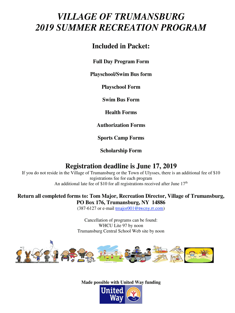 2019 SUMMER RECREATION PROGRAM