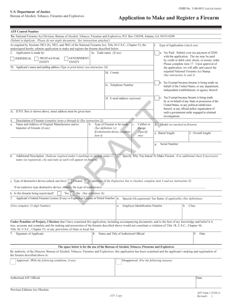 Bureau of Alcohol, Tobacco, Firearms and ExplosivesApplication to Make and Register a Firearm ATF Control Number