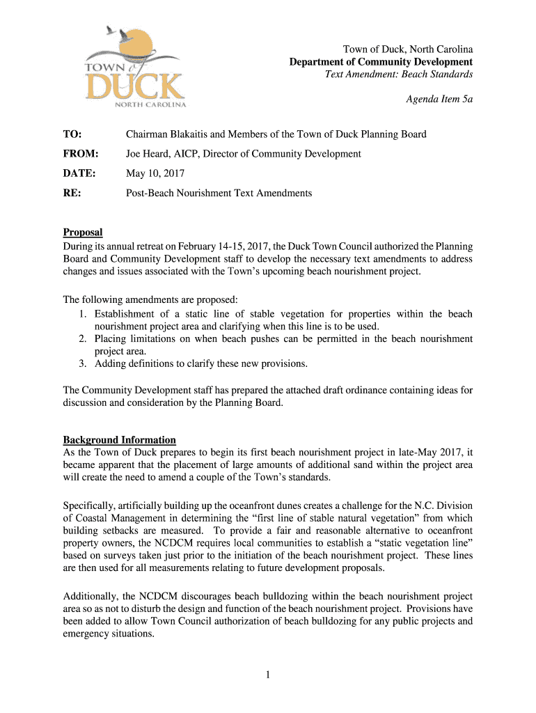 TO:Chairman Blakaitis and Members of the Town of Duck Planning Boardroom:Joe Heard,