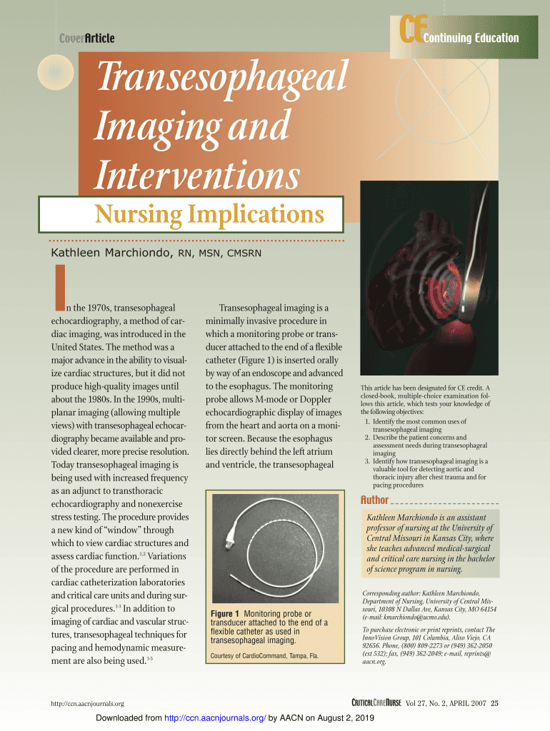 Kathleen Marching, RN, MSN, Morning the 1970s, transesophageal