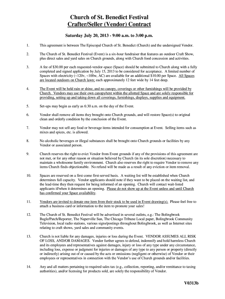 Get the free Church of St. Benedict Festival Crafter/Seller (Vendor) Contract