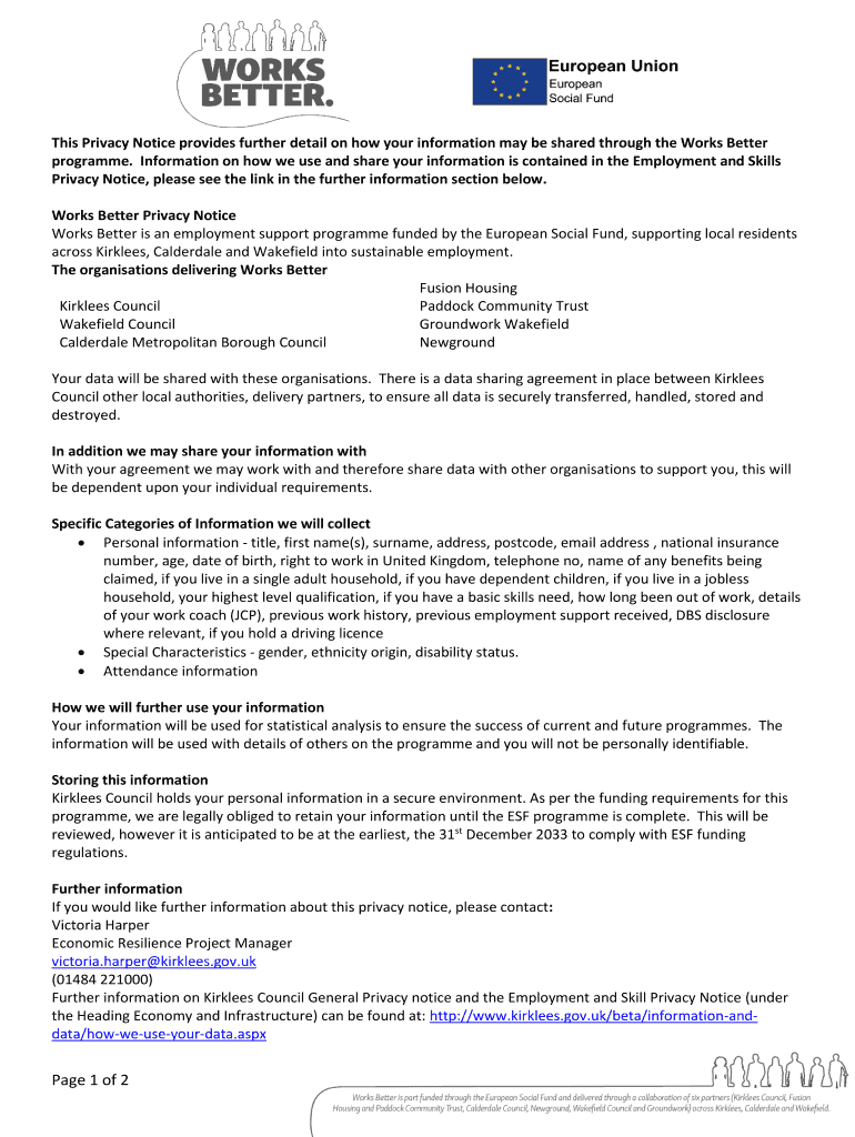 This Privacy Notice provides further detail on how your information may be shared through the Works Better