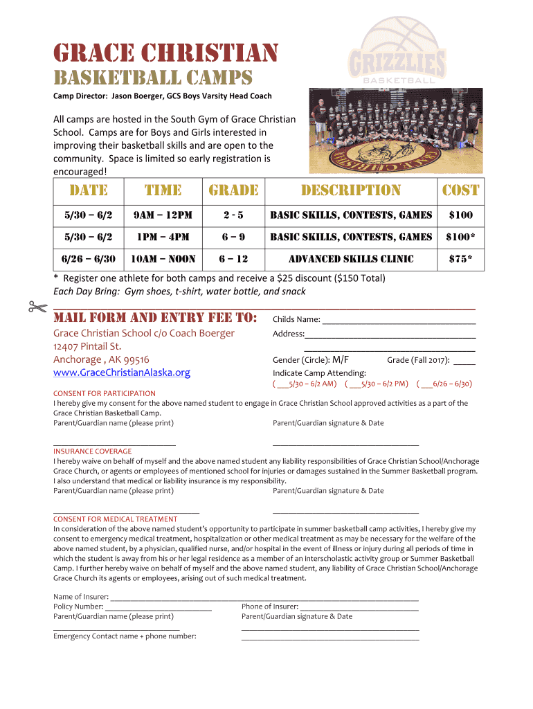 BASKETBALL CAMPSCampDirector:JasonBoerger, GCSBoysVarsityHeadCoachAllcampsarehostedintheSouthGymofGraceChristian