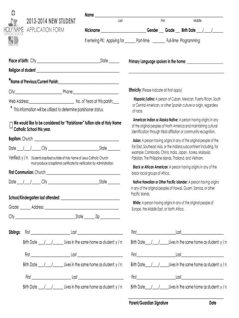 The Student Application Form should be filled out by parents or guardians of prospective students seeking enrollment at Holy Name Catholic School.