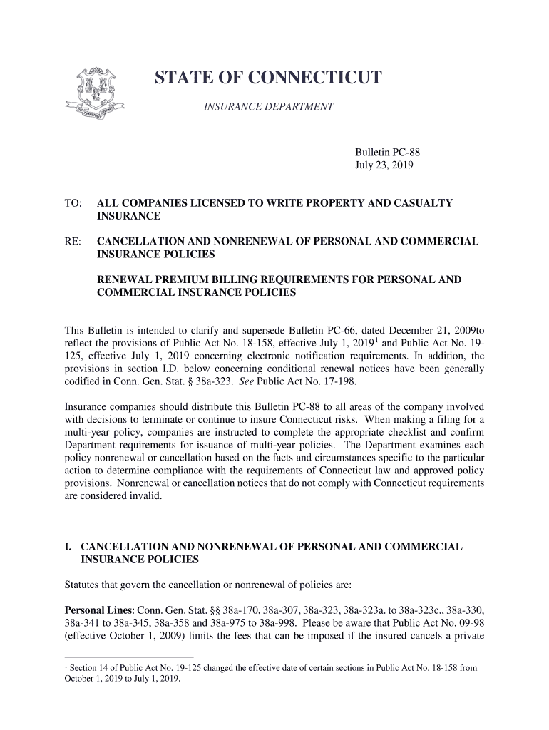 Get the free Bulletin PC-88: Cancellation and Nonrenewal of Personal and ...