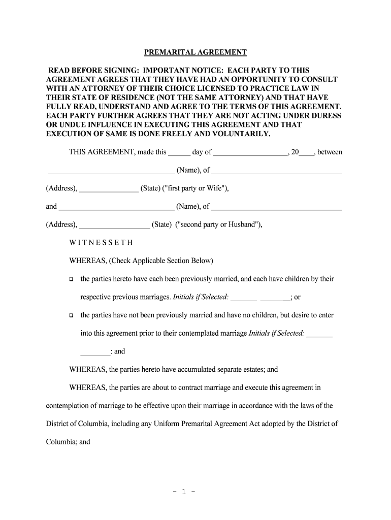 Understanding the legal framework surrounding premarital agreements is crucial for both parties. The District of Columbia adheres to the Uniform Premarital Agreement Act, which outlines the legality and enforceability of these agreements.