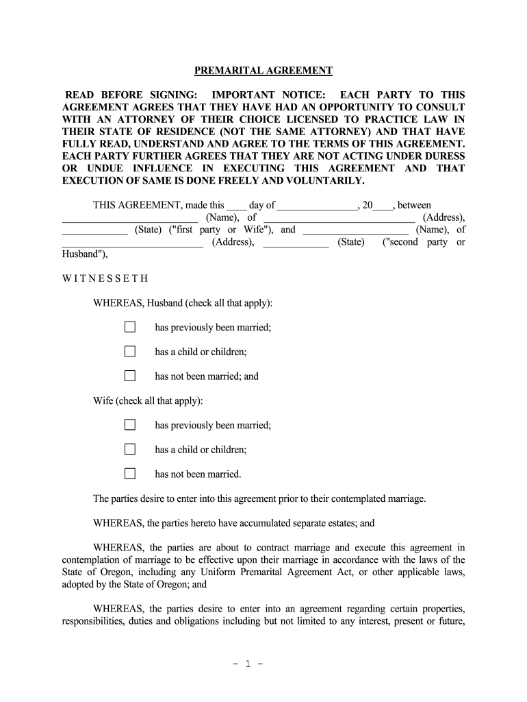 Who needs oregon oregon prenuptial premarital?