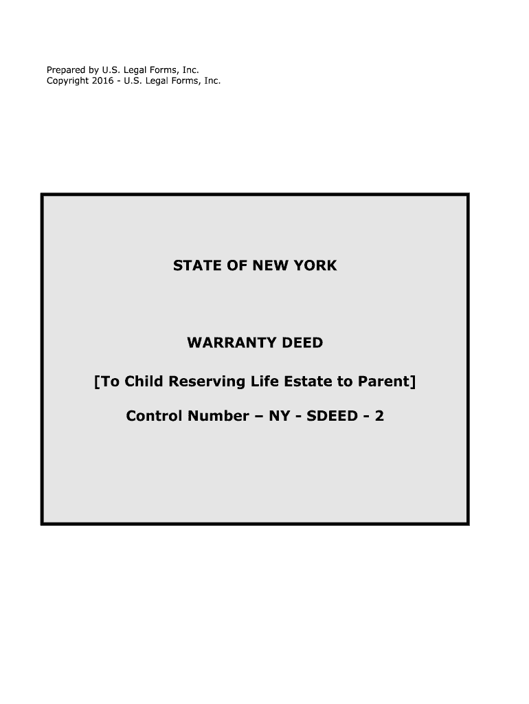 Prepared by U.S. Legal Forms, Inc. Copyright 2016 U.S. Legal Forms, Inc. STATE OF NEW YORKWARRANTY DEED To Child Reserving Life Estate to Parent Control Number NYS DEED 2NOTE ABOUT COMPLETING THE