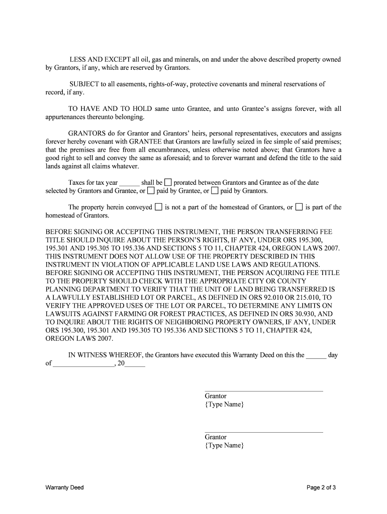 Processing times can vary by county in Oregon, but generally, allow a few weeks for the Warranty Deed to be officially recorded after submission.