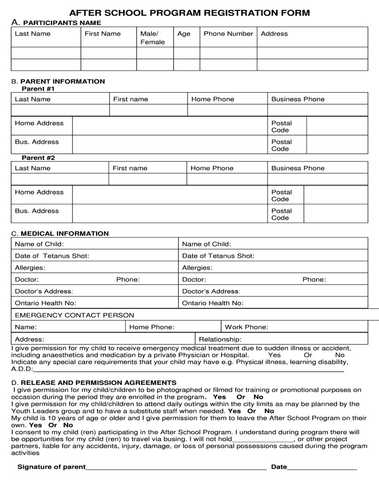 The After School Program Registration Form includes a variety of important elements designed to capture all necessary information. These features include:
