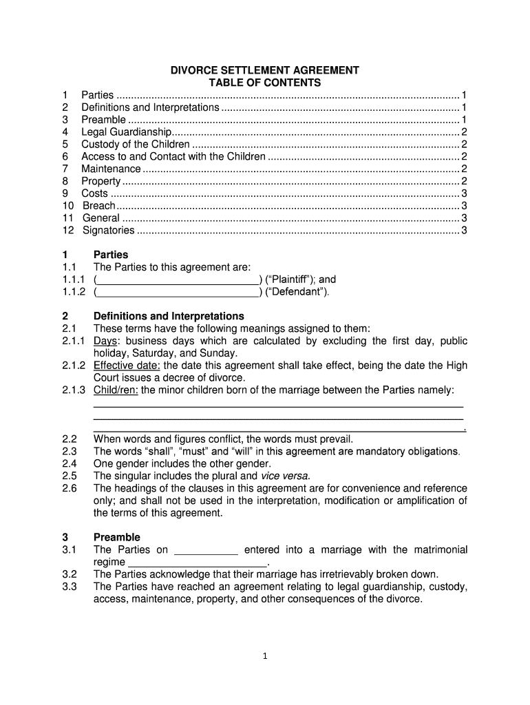 Get the free Divorce Settlement Agreement