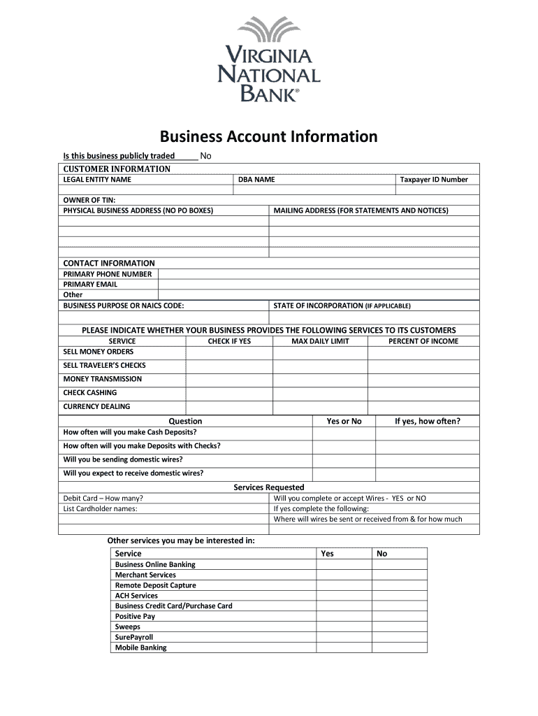 Get the free Business Account Information - vnb.com