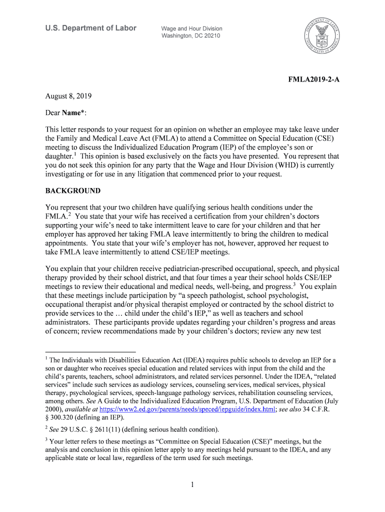 Get the free U.S. Department of Labor 1 FMLA2019-2-A August 8, 2019 ...