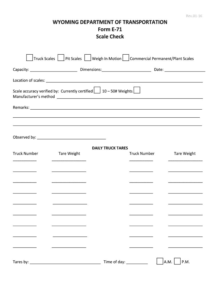 Get the free E-71 Scale Check with Instructions Rev. 01-16 - wydot-filestore dot state wy