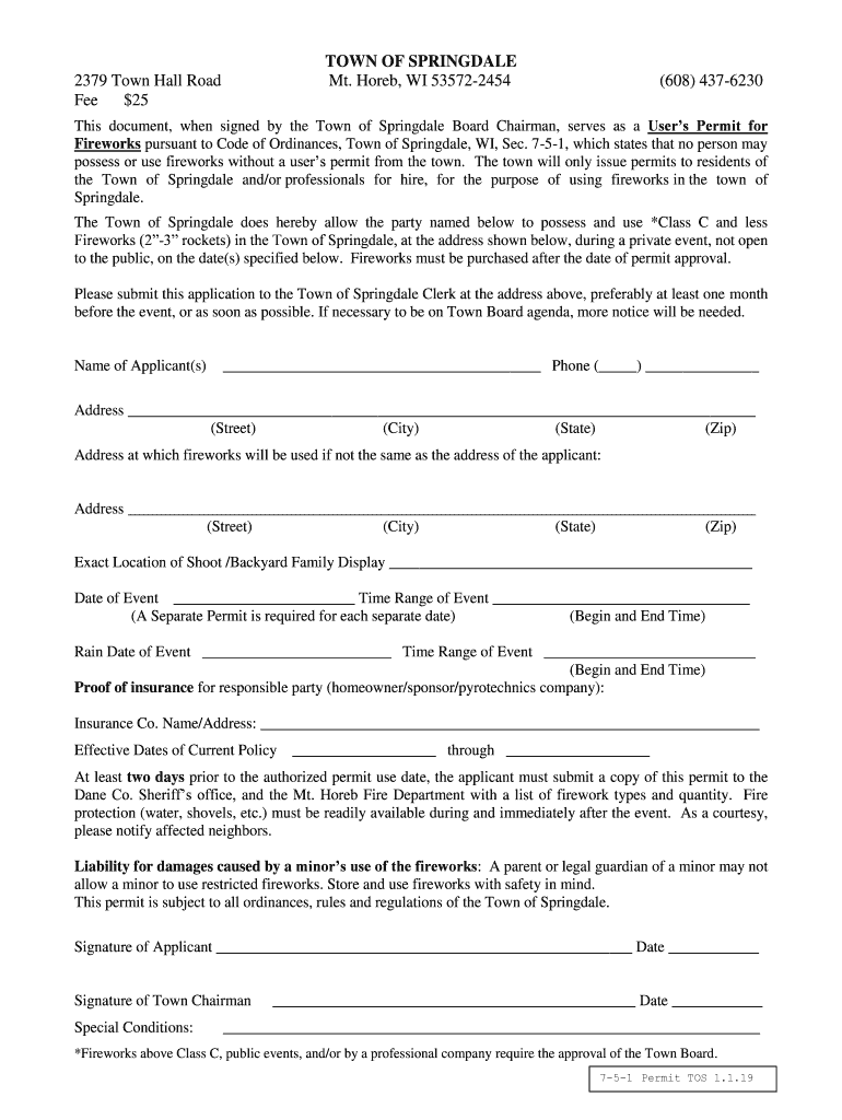 $25(608) 4376230This document, when signed by the Town of Springdale Board Chairman, serves as a Users Permit for