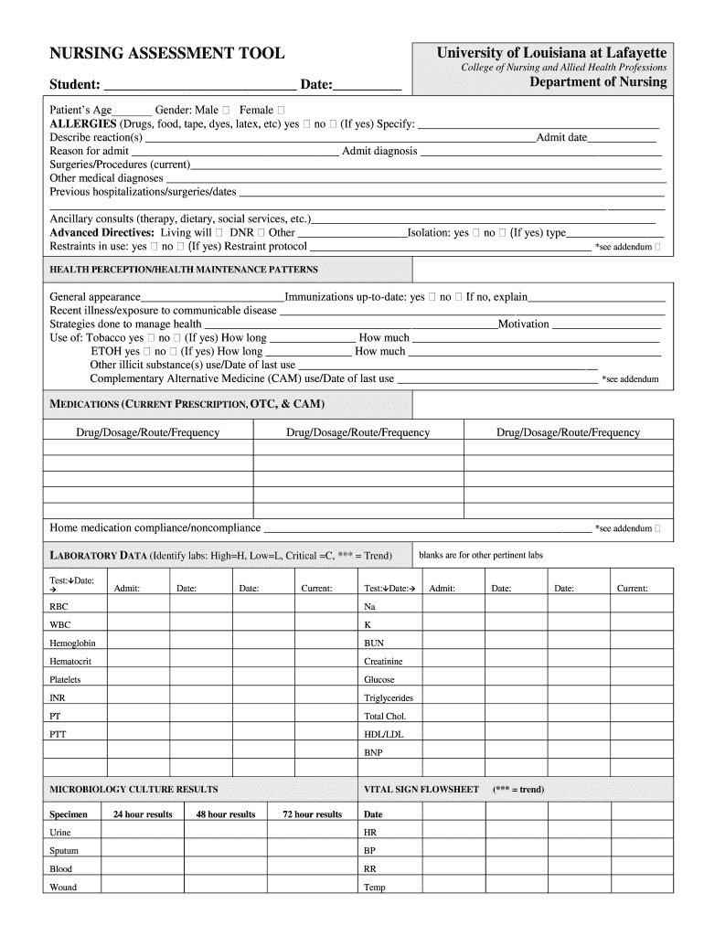 Get the free Nursing assessment tool - College of Nursing amp Allied Health bb