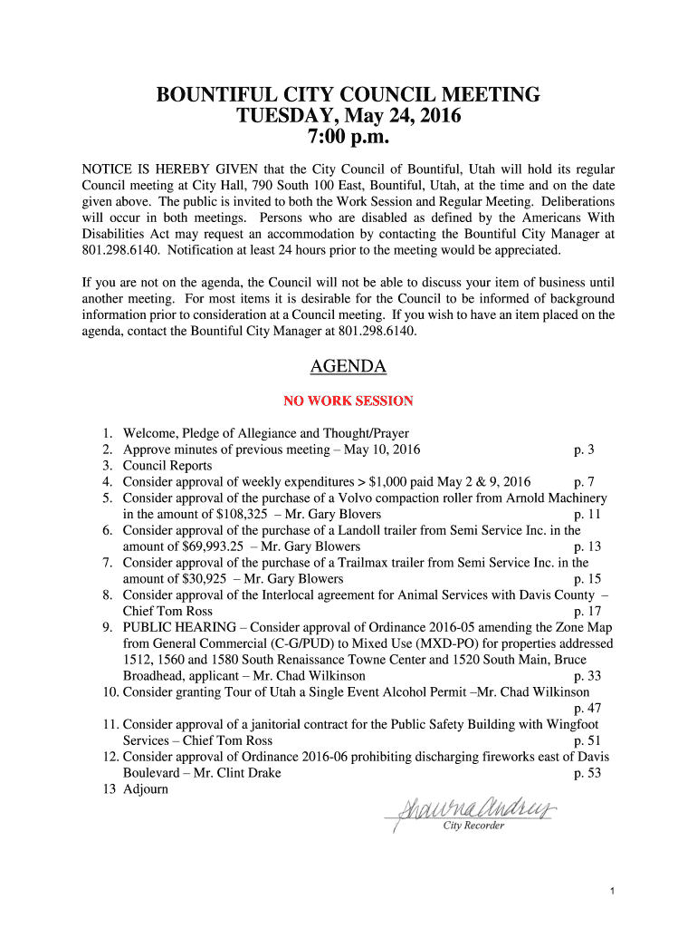 Get the free NOTICE IS HEREBY GIVEN that the City Council of Bountiful, Utah will hold its regular