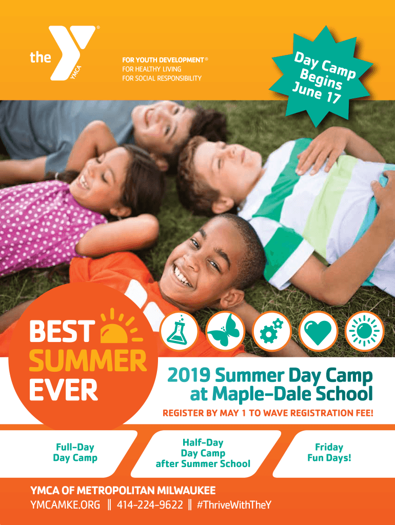 Day Cam Begin p June NS 17BEST SUMMER EVER Full Day Camp2019 Summer Day Camp at Maple Dale School REGISTER BY MAY 1 TO WAVE REGISTRATION FEE! Halfway Day Camp after Summer School YMCA OF METROPOLITAN