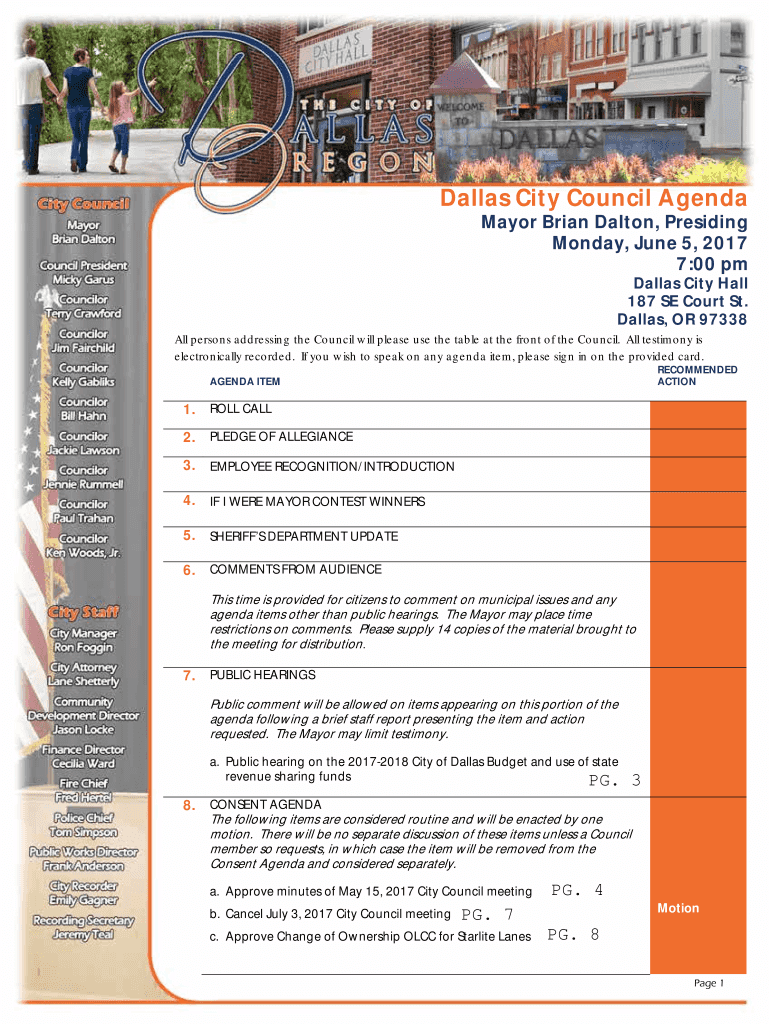 Dallas, OR 97338All persons addressing the Council will please use the table