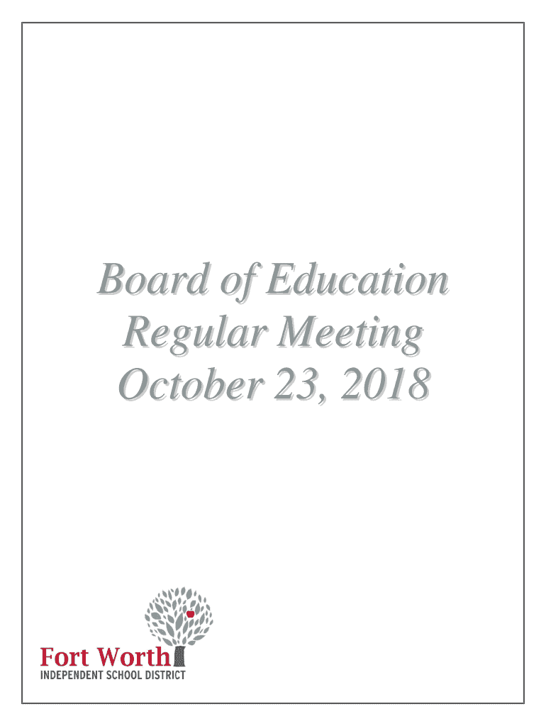 Board of Education Regular Meeting October 23, 2018, Regular MeetingNotice is hereby given that on October 23, 2018, the Board of Education of the Fort Worth Independent School District will hold