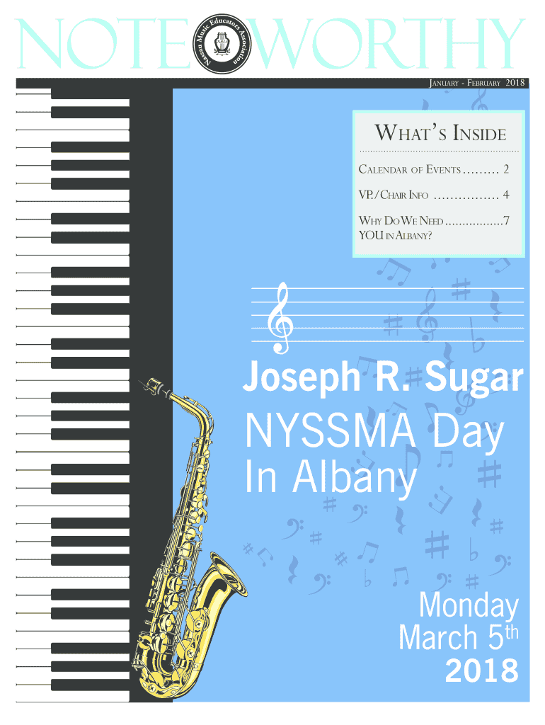 January February 2018Whats Inside Calendar of Events.......... 2 VP./Chair Info ................. 4 Why Down Need..................7 YOU in Albany? Joseph R. SugarNYSSMA Day In Albany Monday, March