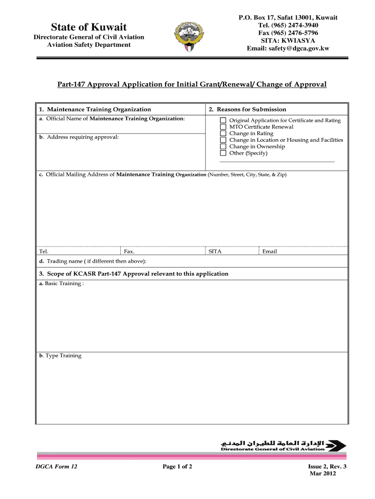 Directorate General of Civil Aviation Safety DepartmentPart147 Approval